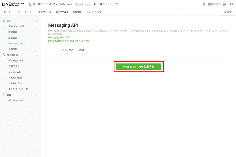 ここでは、LINE公式アカウントの作成の手順を説明します。
